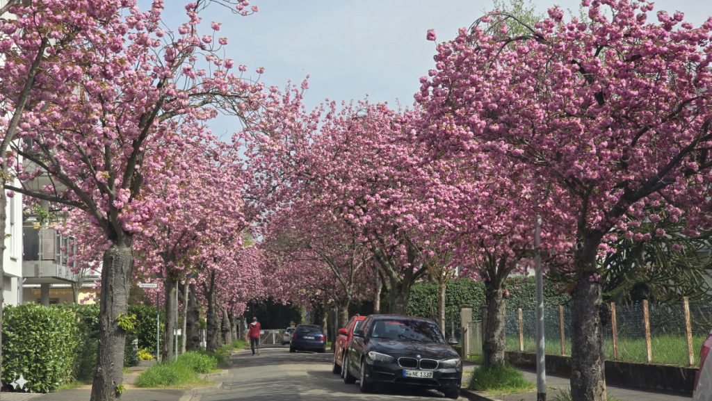 Und weil es ja keine blühenden Kirschbäume auf Malle gab, füge ich hier ein Foto aus meinem Ort ein, das ich zuhause eine Woche vor meiner Abreise aufgenommen habe. Japanische Kirschbäume.