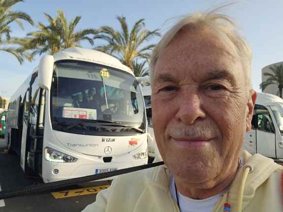 Am Flughafen PMI suche ich mir meinen Reisebetreuungsschalter und bekomme einen Voucher für den Bus draußen. Glück: Er fährt gleich los, der Fahrer hat nur noch auf mich gewartet.
