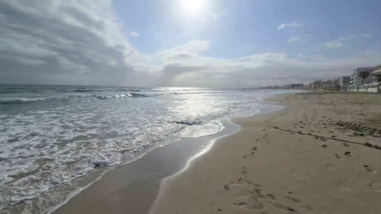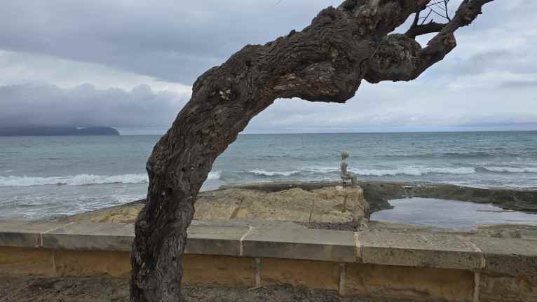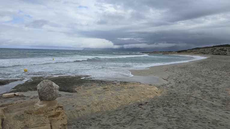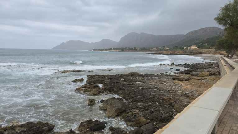 Passend zum Tag der Trauer zieht eine sibirische Kaltfront vom Nordpol zu uns runter nach Mallorca und es ist nochmal kälter als gestern Nachmittag und Abend. Die Wellen wollen den Strand wegreißen.