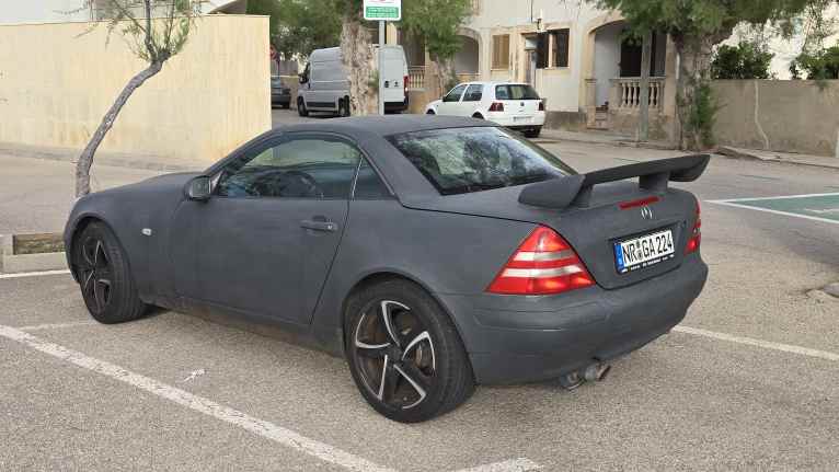 Schönes Auto. Zwei Reifen platt. Scheibe eingeschlagen. Verkommt immer mehr. Schade drum!