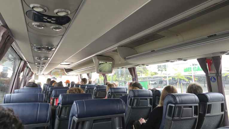 Wieder rausgekommen esse ich einen akzeptablen Hotdog „mit allem“. Den vom Guide empfohlenen kurzen Weg zum Aussichtspunkt spar ich mir. Bei dem Geniesel kann man bestimmt doch nix seh’n. Ich setz mich lieber gleich in unseren Bus. Motor läuft und es ist warm.