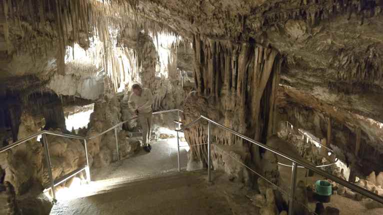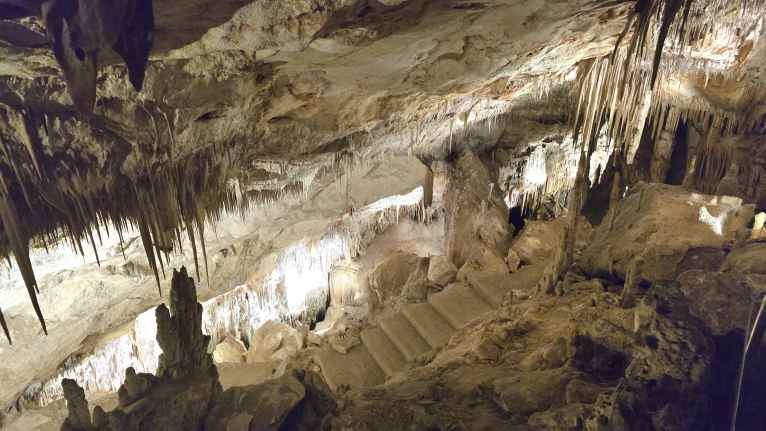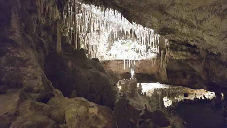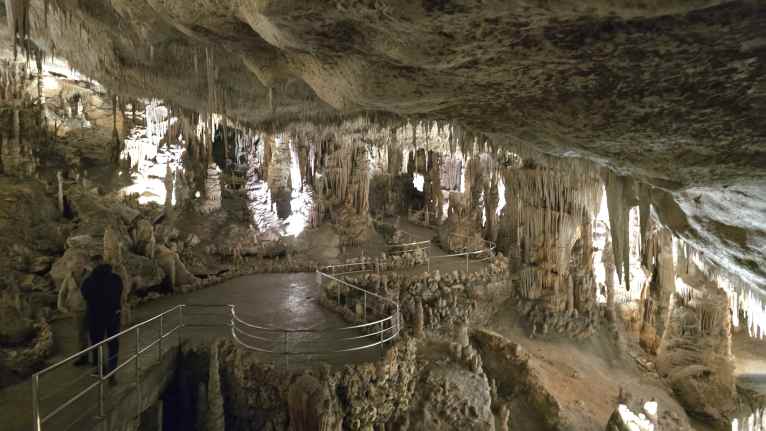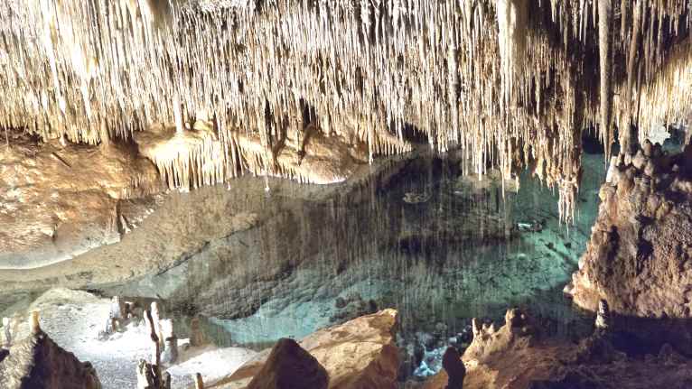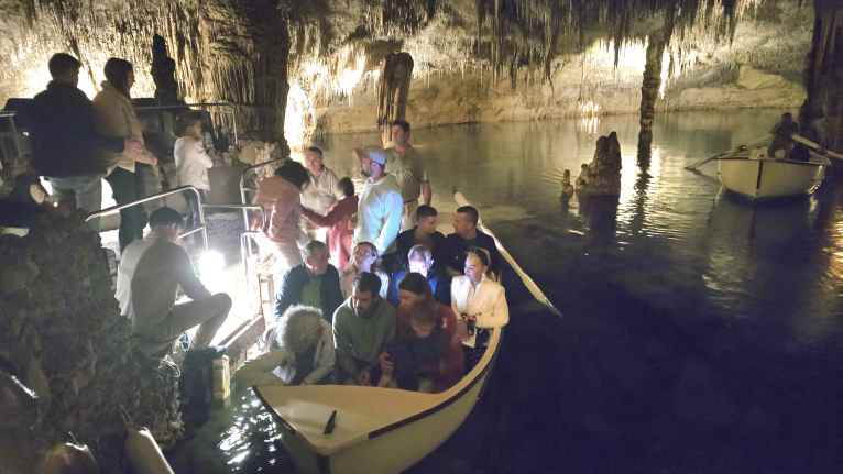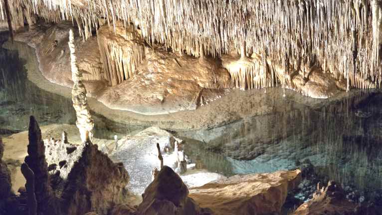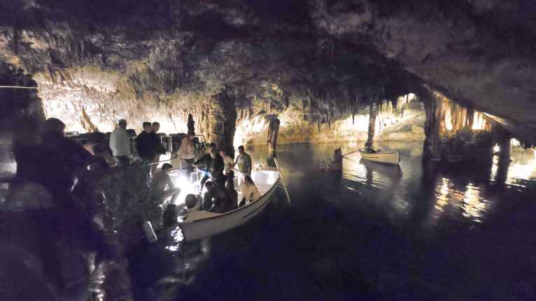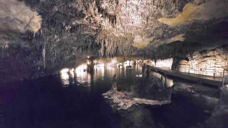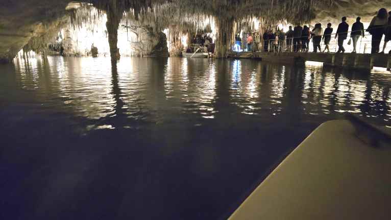 In der Höhle ist es angenehm warm. Man wandert langsam im Pulk der Leute durch die Höhle. Bis zu einem See, der Lago Martel, der als einer der größten unterirdischen Seen der Welt gilt. Édouard Alfred Martel hat die Höhle um 1890 herum entdeckt.