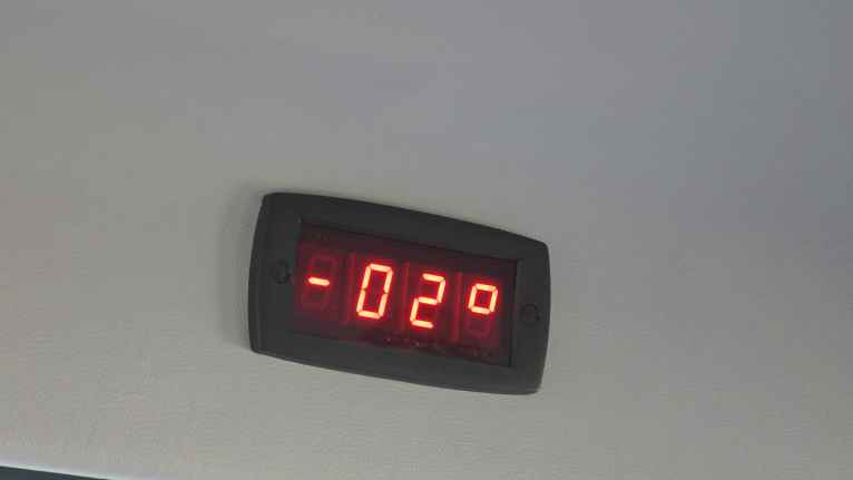 Temperaturanzeige im Bus. War aber nicht ganz korrekt. Obwohl, gefühlt eigentlich ja doch. Sie ging dann noch bis 8° rauf. Plus acht Grad!