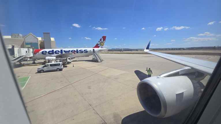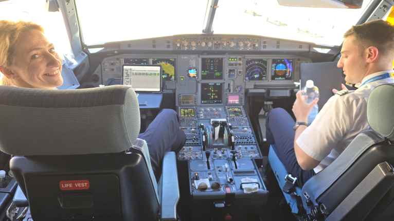 Dank des geschickt eingesetzten Business-Vouchers kann ich die lästige Wartezeit in der Lounge verbringen. Rückflug pünktlich wieder in einem A320. Ich darf sogar den beiden Piloten im Cockpit Guten Tag sagen.