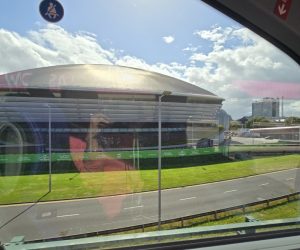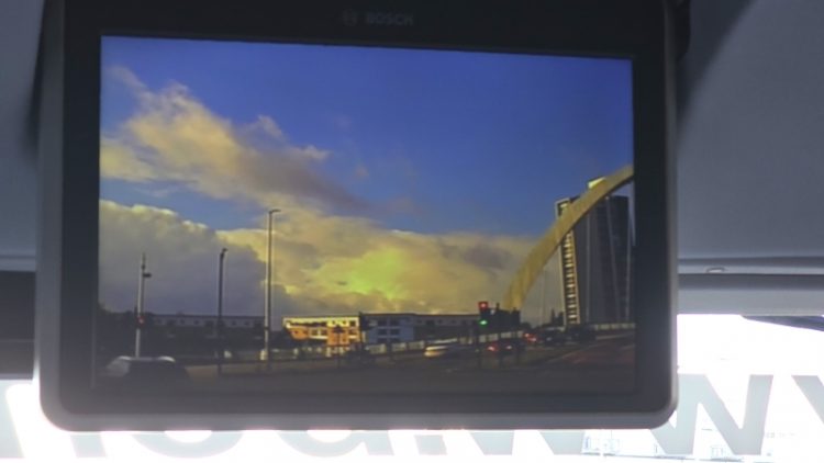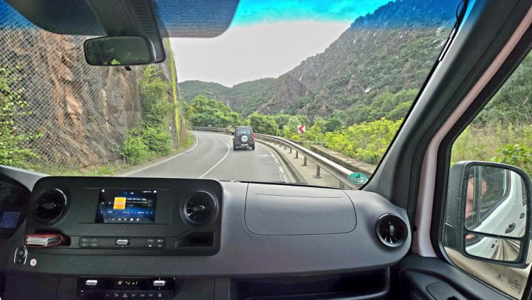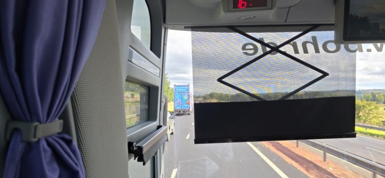 Der Busfahrer hätte am Dach unseres Busses ruhig mal öfters die zwei, drei Monitore ausfahren können, auf denen wir wie bei einer Dashcam nach vorne hätten sehen können. Das hat er aber nur zwei, dreimal kurz gemacht – war ihm offenbar nicht wichtig.