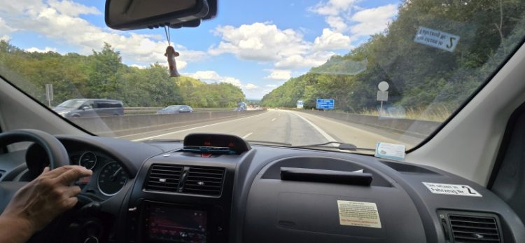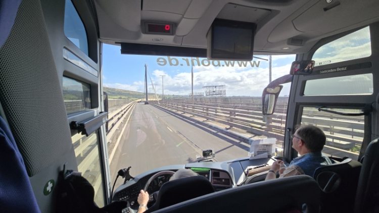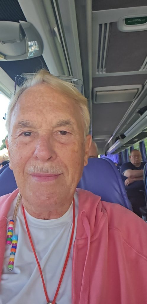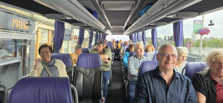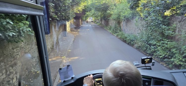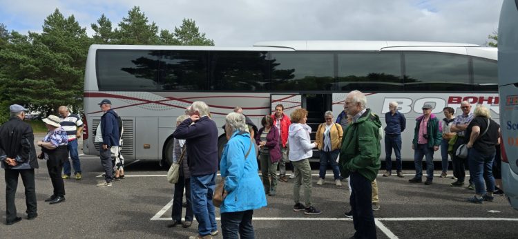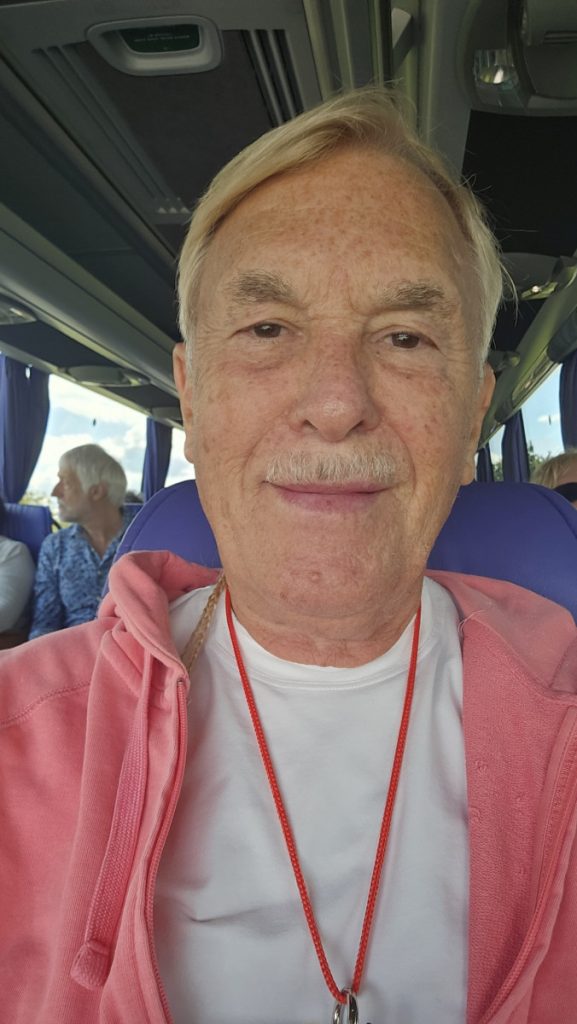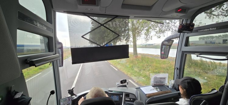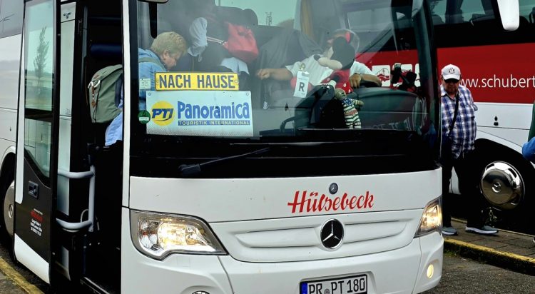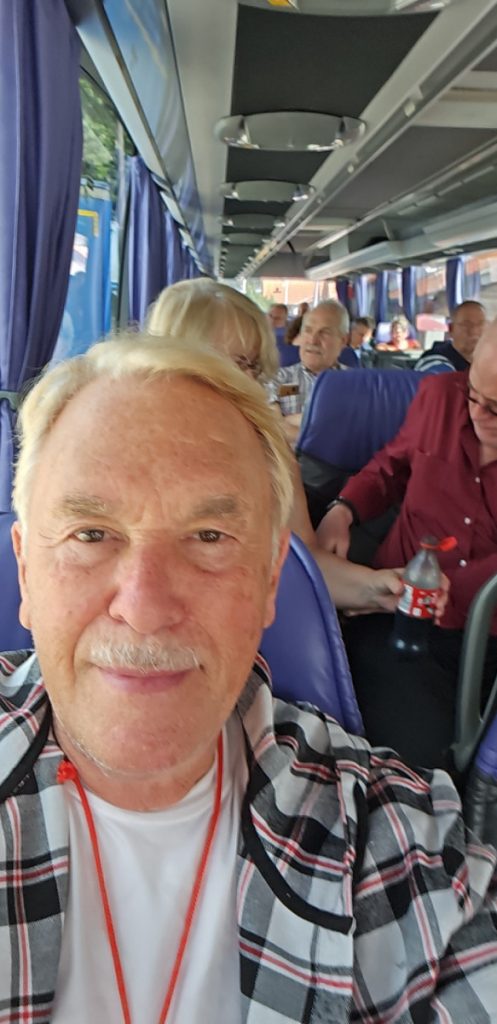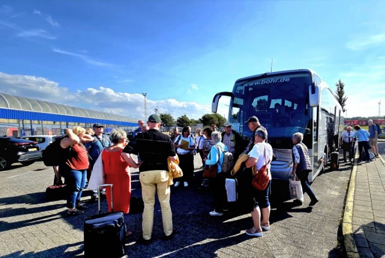 Ein sonnig-warmer Donnerstag-Vormittag im August 2024: Pünktlich um halb zehn werde ich mit einem kleinen Bus abgeholt – ja, kommt selten vor – und nach zwei weiteren Abholungen werden wir alle fünf zum großen Reisebus gebracht. Wie jetzt immer, hab ich nur meine kleine lederne Reisetasche dabei. Brauch ja nicht viel Klamotten.