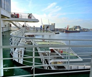 Das Schiff ist sehr groß und hat zehn Etagen, plus zwei ganz oben, die Stockwerke 9 und 10 haben die Kabinen für Passagiere.