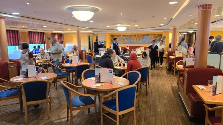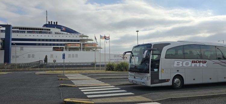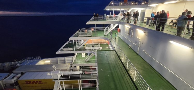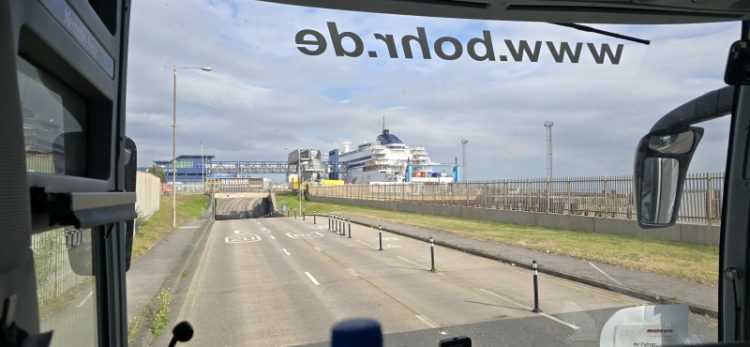 Schnell raus aus dem Bus, durch die Passkontrolle und direkt aufs Schiff, die „Pride of Hull“. Der Busfahrer fährt unterdessen unseren Bus in den Schiffsbauch, vorwärts rein, später rückwärts raus. Oder umgekehrt. Müssen alle Busse und Lkw so machen.