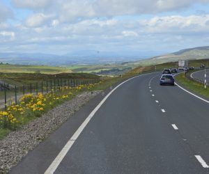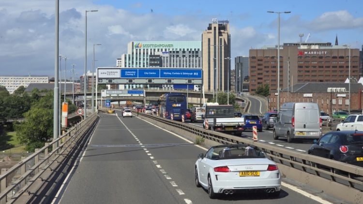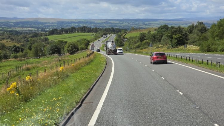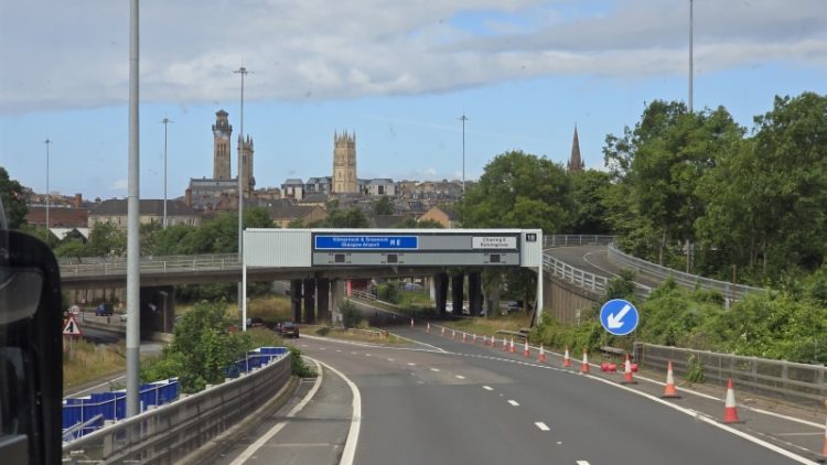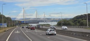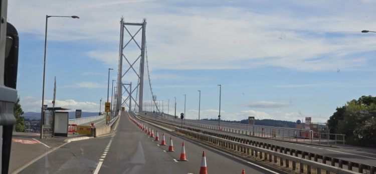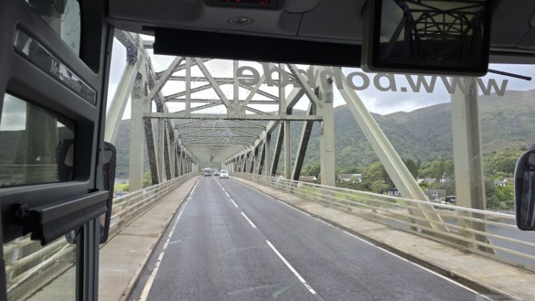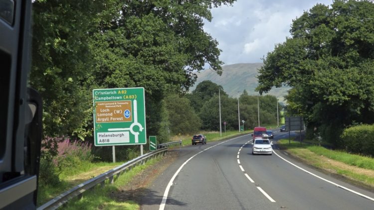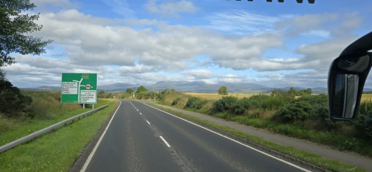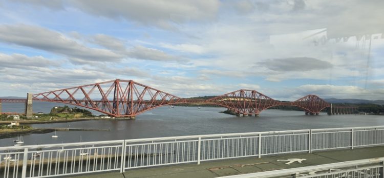 Zunächst fahren wir über die Humber-Bridge und dann auf Autobahn und Schnellstraße nach Glasgow – rund 270 Meilen Richtung Nordwesten. (Eine Meile entspricht 1,6 Kilometern, also einfach mal anderthalb multiplizieren und noch ’n Fitzelchen addieren.)