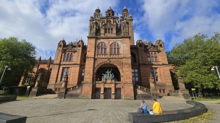 Wir machen eine kurze Stadtbesichtigung Glasgows – inklusive Fotostopp am Kelvingrove Museum. Glasgow ist die größte Stadt Schottlands und war früher die Welthauptstadt für Schiffbau; ein Drittel (andere Quelle „fast die Hälfte“) aller Schiffe weltweit wurde hier am Clyde gebaut. Und: Hier gibt es die meisten italienischen Restaurants nach Italien. In Glasgow wurde die weltweit drittälteste U-Bahn gebaut: Glasgow Subway