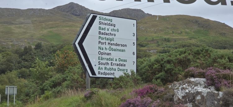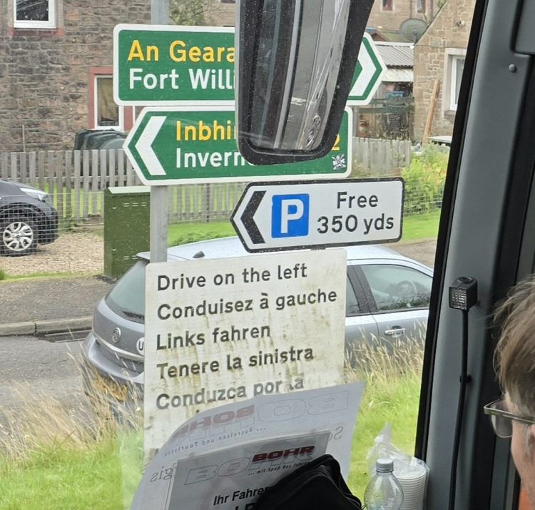 Weiter fahren wir entlang des Loch Linnhe und des Loch Lochy – viele Ortsnamen klingen für uns fast wie Zungenbrecher. Kein Wunder, sie stammen alle aus dem Gälischen. Diese alte Sprache existiert seit Jahrhunderten und gilt als die Ursprungssprache Schottlands. Man vermutet, dass sie ursprünglich aus Irland kam. Unser Wetter ist, wie erwartet, eine sich abwechselnde Mischung aus Sonne und Regen.