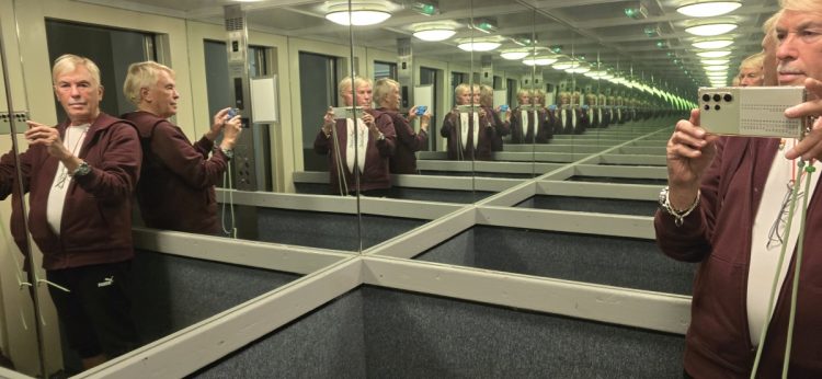 Kaum sind wir unterwegs, klopft mir jemand auf die Schulter. Ich drehe mich um und – Überraschung: Mein guter Freund Klaus strahlt mich an! Er und seine Frau E. haben Last-Minute-Tickets ergattert! Wir haben uns letztes Jahr auf der Fahrt nach Paris kennengelernt, und ich freu mich riesig über das unerwartete Wiedersehen – und dass die beiden jetzt hier mitfahren.