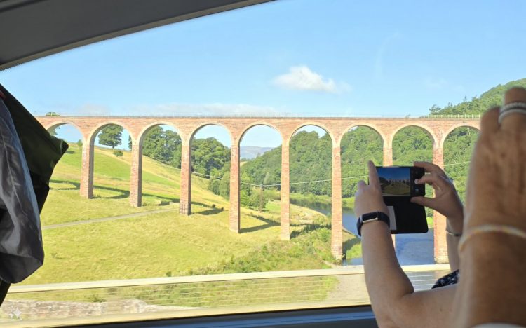 Ach ja, noch etwas: Hauke machte uns oft auf nette Kleinigkeiten aufmerksam, wie zum Beispiel eine alte Römerbrücke rechts, eine besonders schöne Aussicht links oder sogar plötzlich und unverhofft ein Einhorn auf einer Säule. Oder mal ein wunderschöner alter Eisenbahnviadukt – es gab so viel zu sehen! Da hätte der Busfahrer ruhig mal kurz den Fuß vom Gaspedal nehmen können, damit wir ein paar Fotos während der Fahrt aus dem Bus heraus hätten machen können. Aber das tat er nie – vielleicht ist er einfach kein Fan vom Fotografieren. Oder er wollte uns ein kleines bisschen ärgern und uns die Fotomotive vorenthalten. (Mer muss ooch jönne könne…)