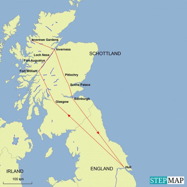Am Vormittag unternehmen Sie eine kurze Rundfahrt durch Glasgow, der größten Metropole Schottlands. Anschließend bewundern Sie die Schönheiten des Loch Lomond. Sie passieren das beeindruckende Glen Coe Tal, das „Tal der Tränen“ und schon bald liegt der legendäre Loch Ness vor Ihnen. Von der romantischen Ruine Urquhart Castle aus genießen Sie den Blick über Loch Ness. Am späten Nachmittag erreichen Sie Ihr Hotel in Inverness. Abendessen und Übernachtung im 3-Sterne Craigmonie Hotel. >geändert in Columba Hotel