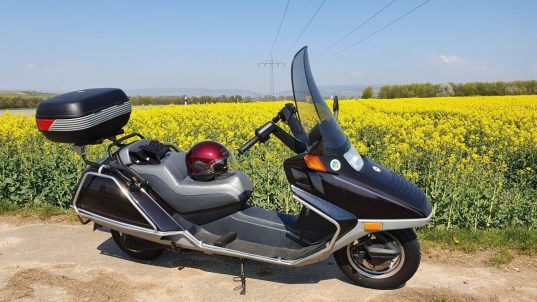 Und mein kleiner, treuer, braver HONDA Helix, jetzt auch schon bald 30 Jahre alt. Es geht ihm gut und ich gebe ihn natürlich niemals her! (Foto von 2019)